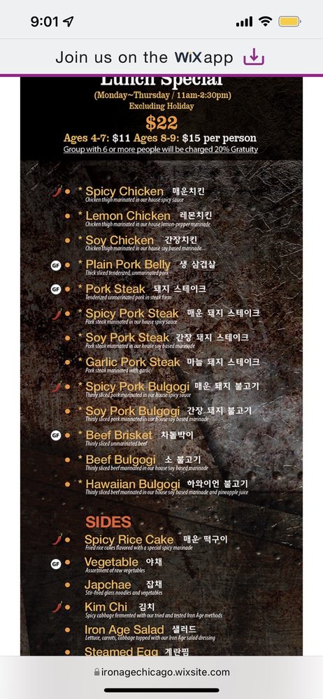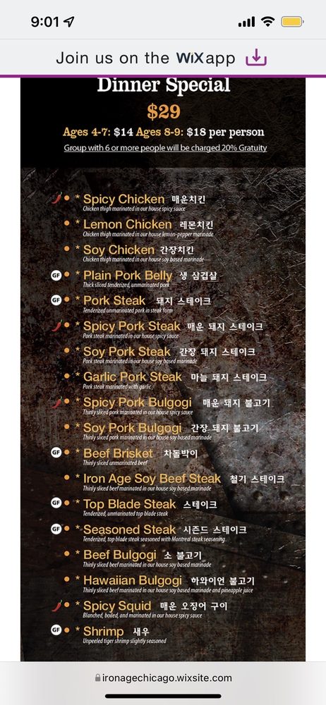 Iron Age Korean is a lively Korean barbeque restaurant located in Chicago, IL. Offering a variety of meats cooked at your table, the all-you-can-eat deal is a great value at around $22 for lunch and $29 for dinner. The beef bulgogi and spicy pork bulgogi are must-try dishes, with flavorful marinated options available. The ambiance is cozy at the Wicker Park location and more bustling at Glenview. Customers praise the tasty side dishes, especially the japchae and zucchini. The restaurant is perfect for group gatherings, with options for outdoor seating and a full bar. While the ventilation could be improved, the attentive staff make up for it with quality service. Overall, Iron Age Korean offers a fun and delicious dining experience for those craving Korean BBQ.